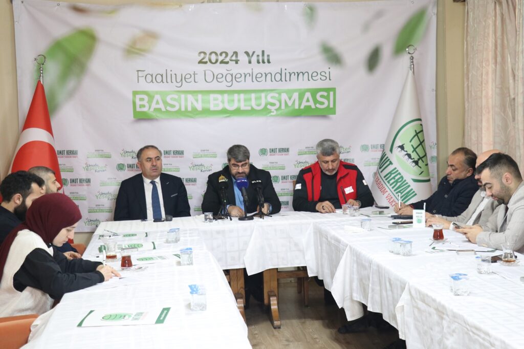 “Umut Kervanı olarak, yurtiçinde yapmış olduğumuz gıda, giyim, nakdi yardım, kırmızı et, ev eşyası, kırtasiye, yakacak, sıcak yemek, ayakkabı yardımı, un yardımı, temizlik ürünleri, kurban eti ve deprem bölgesi yardımları olmak üzere 60 bin 546 aileye ulaştık. Toplamda 50 milyon 237 bin 355 lira değerinde ayni ve nakdi yardımda bulunduk. Yurtdışında ise başta Filistin olmak üzere, Lübnan, Yemen, Suriye, Afganistan, Asya ve Afrika ülkelerinde; cami inşaatı, medrese inşaatı, katarakt, su kuyusu, kurban, sıcak yemek, gıda paketi, ekmek dağıtımı, giyim, Kur’an-ı Kerim, süt keçisi, nakdi yardım, kırtasiye, kömür, battaniye gibi çeşitli projelerle 275 bin 450 aileye ulaşarak 89 milyon 621 bin 586 liradeğerinde yardımda bulunduk. Genel toplamda ise 2024 yılında yurtiçi ve yurtdışında 335 bin 996 aileye ulaşarak 139 milyon 857 bin 322 lira değerinde insani yardımda bulunduk. Bu yardımlar ile yardımlaşma ve dayanışma ruhunun canlı tutulması adına 1 milyon 343 bin 984 kişinin sıkıntısını gidermenin ve kardeşlerimizin yanında bulunmanın sevincini yaşadık. Bununla beraber birçok ülkede inşasını tamamladığımız 6 adet cami, 160 su kuyusu ve kalıcı eserlerimizi de yine kardeşlerimizin hizmetine sunduk.”
