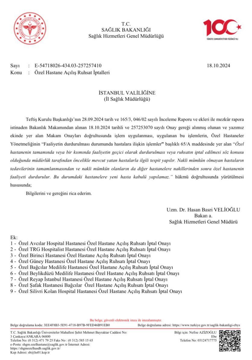 “İstanbul’da bazı özel hastanelerin yeni doğan bakım ünitelerinin kiralanarak insani ve uygun olmayan koşullar nedeniyle bebek ölümlerinin meydana geldiğine yönelik CİMER’e yapılan başvurular ve İstanbul İl Sağlık Müdürlüğünün ihbarı üzerine Büyükçekmece Cumhuriyet Başsavcılığınca 21.05.2023 tarihinde soruşturma başlatılmış, bu kapsamda bugüne kadar gözaltına alınan 47 şüpheliden 22’si tutuklanmıştır.