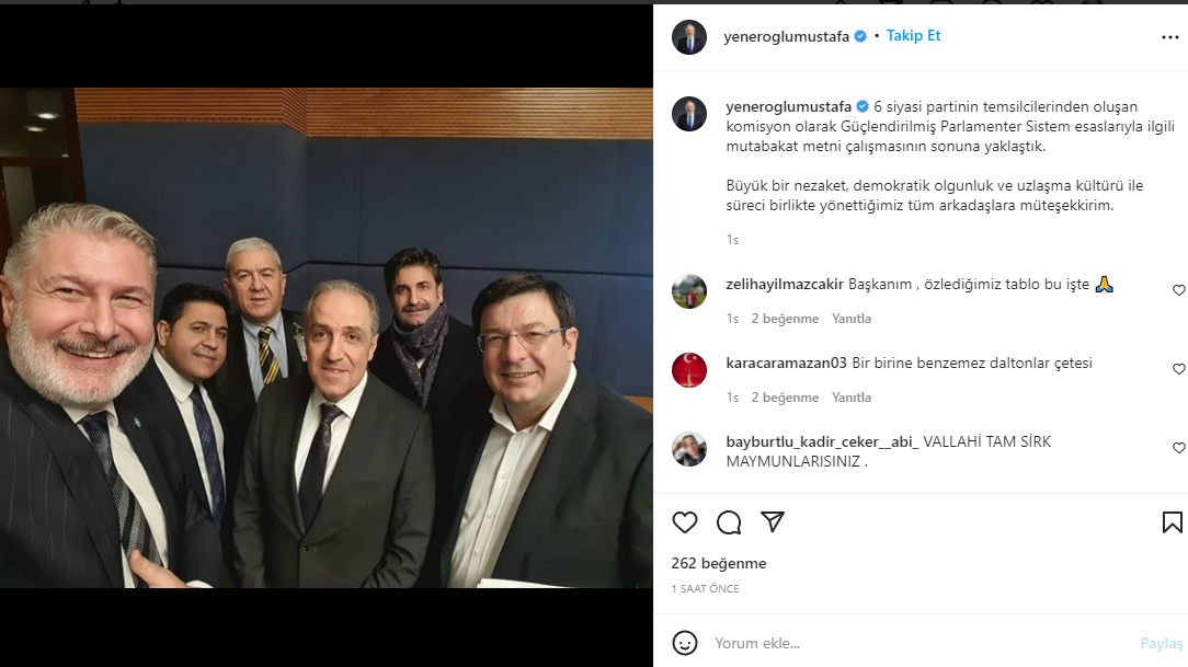 CHP, İYİ Parti, Saadet Partisi, DEVA, Gelecek Partisi ve Demokrat Parti’nin temsilcilerinden oluşan komisyon üyeleri gelişmeyi sosyal medya hesaplarından, İYİ Partili Bahadır Erdem’in çektiği selfie’yle paylaştılar.