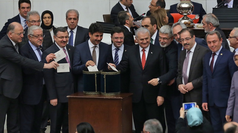 Meclis Genel Kurulu, Anayasa değişikliği görüşmelerine beşinci gününde devam ediyor. 9. maddenin 343 'evet' oyuyla kabul edilmesinin ardından saat 21.25 civarı Genel Kurul teklifin 10. maddesini görüşmek üzere yeniden bir araya geldi.