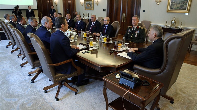 Bu kapsamda Başbakan Yıldırım başkanlığındaki toplantıya, Genelkurmay Başkanı Orgeneral Hulusi Akar, Başbakan Yardımcıları Nurettin Canikli, Numan Kurtulmuş, Mehmet Şimşek, Tuğrul Türkeş, Veysi Kaynak, Adalet Bakanı Bekir Bozdağ, Dışişleri Bakanı Mevlüt Çavuşoğlu, İçişleri Bakanı Efkan Ala, Milli Savunma Bakanı Fikri Işık, Kara Kuvvetleri Komutanı Orgeneral Salih Zeki Çolak, Deniz Kuvvetleri Komutanı Oramiral Bülent Bostanoğlu ve Hava Kuvvetleri Komutanı Orgeneral Abidin Ünal katıldı.