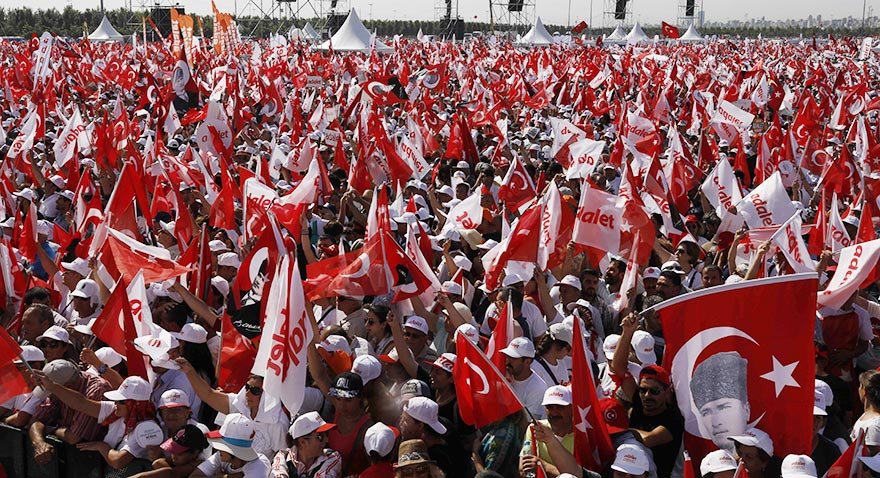 Bu arada, etkinlik alanındaki meydana 80 metre genişliğinde 20 metre derinliğinde, üzerinde 2 dev led ekran ile "adalet" yazılı bir sahne kuruldu. Sahnenin iki yanında Türk bayrağı ile Atatürk posteri bulunuyor.