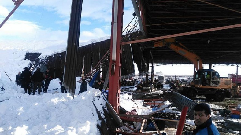 Konya'nın Akşehir ilçe merkezinde perşembe günleri kurulan semt pazarının çatısı, üstünde biriken kar nedeniyle sabah saatlerinde çöktü. Bazı esnaf ve alışveriş için pazara gidenler, çatının metal parçalarıyla düşen karların altında kaldı.