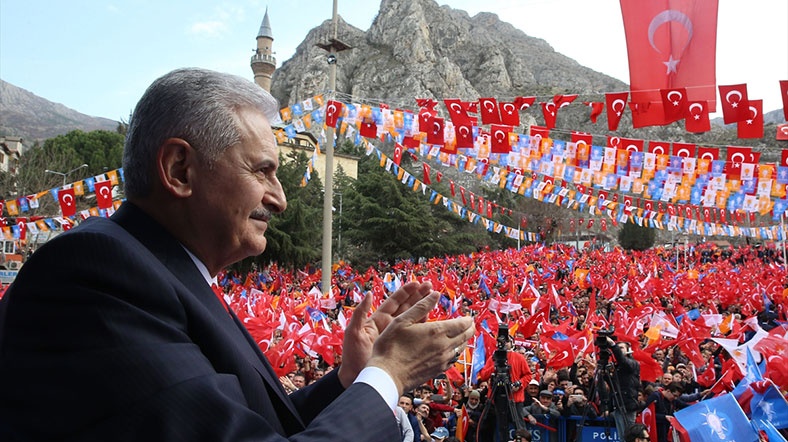 Başbakan Binali Yıldırım, AK Parti'nin Amasya mitinginde konuştu. Yavuz Selim Meydanı'ndaki mitingde halka hitap eden Yıldırım, 16 Nisan'da yapılacak anayasa değişikliği referandumuna ilişkin şunları söyledi: