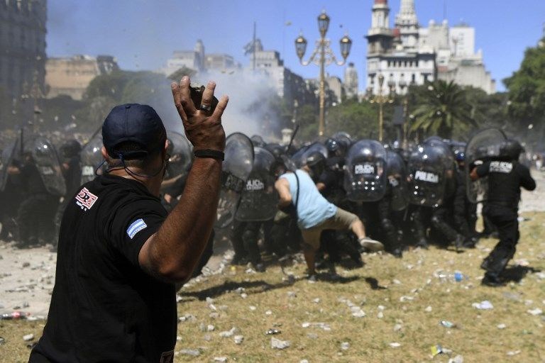 Arjantin'de Kongre'de görüşülmeye başlanan emekli maaşlarında revizyon teklifini protesto eden çok sayıda gösterici Kongre önünde toplandı.