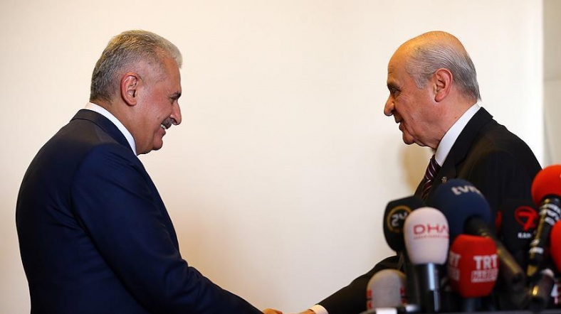Başbakan ile MHP Genel Başkanı Devlet Bahçeli arasındaki görüşme ise bugün saat 13:30’da gerçekleşecek. Bu görüşmenin zamanlaması önemli. Çünkü geçen hafta partisinin grup toplantısında konuşan MHP Genel Başkanı, AK Parti’ye Başkanlık sistemini Meclis’e getirme çağrısı yapmıştı. Türkiye'de fiilen başka bir sistem olduğunu belirten MHP lideri, "Metin geldiği zaman MHP de metin üzerinde değerlendirme yapacak ve Anayasa değişikliği prosedürü çerçevesinde Meclis'teki çalışmalara katkı sağalayacak" ifadelerini kullandı. Bahçeli’nin bu sözleri geride kalan hafta boyunca çok tartışıldı. Bunun başkanlık sistemine destek açıklaması olduğunu savunanlar da oldu, böyle algılanamayacağını söyleyenler de.