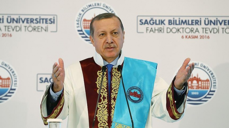 Üsküdar'da düzenlenen Sağlık Bilimleri Üniversitesi Fahri Doktora Tevdi töreninde konuşan Cumhurbaşkanı Tayyip Erdoğan, HDP Eş Genel Başkanları ve milletvekillerinin tutuklanmasıyla ilgili değerlendirme yaptı. Tutuklamalara karşı Batı'dan gelen tepkileri de eleştirdi. "Diktatör Erdoğan" manşetiyle çıkan Alman Bild gazetesi üzerinden Batı'ya seslendi.