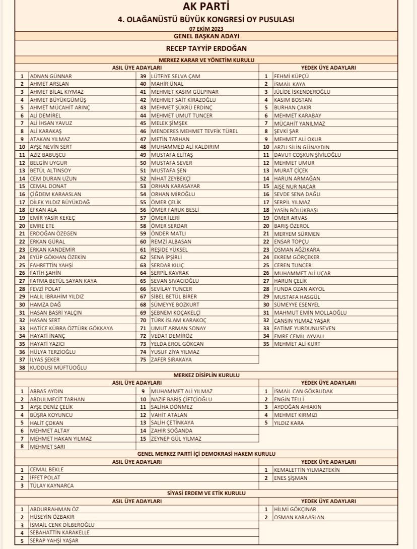 AK Parti MKYK’sına giren isimler arasında eski hakem Kuddusi Müftüoğlu, yazar Hayati İnanç, doğa belgeselcisi Serdar Kılıç ve Sabah yazarı Hasan Basri Yalçın gibi isimler yer alıyor.