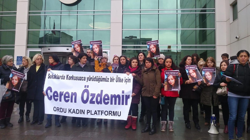 Ordu Adliyesi önünde toplanan Ordu Kadın Platformu, Kadın Savunma Ağı ve Kadın Cinayetlerini Durduracağız Platformu üyeleri, açıklamalarda bulundu. Ordu Kadın Platformu adına konuşan Meryem Külcü, cinayetin sorumluluğunun tek başına katil zanlısına yüklenmesinin yeterli olmadığını belirterek, "Gerekli önlemler alınmış olsaydı Ceren, bugün yanımızda olacaktı. Bu suçun sorumluluğunu tek başına azılı bir suçluya yüklemek yeterli değildir. Azılı suçluyu açık cezaevine çıkaran, onun açık cezaevinden kaçmasını engellemeye yönelik hiçbir tedbir almayan ve firar olayını kamuoyuna duyurmayan kurum ve görevlilerin de soruşturulmasını ve cezalandırılmasını istiyoruz. Bu bağlamda tek başına katile lanetler yağdırmanın yeterli olmayacağını, ceza infaz rejiminin ve ilgili kurum görevlilerinin sorumluluklarının mutlaka tartışılması gerektiğini düşünüyoruz" dedi.
