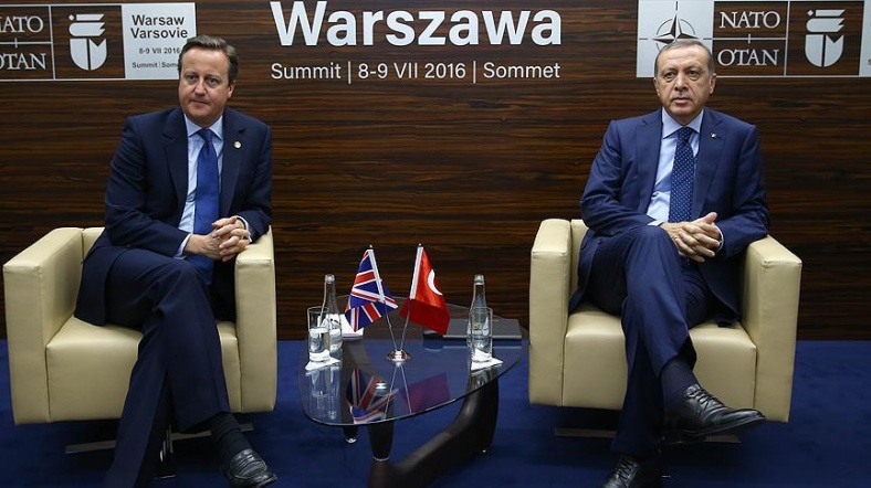 Cameron, Brexit sürecinde Türkiye'nin en az 30 yıl daha AB üyesi olayacağını savunmuş, Erdoğan da bu sözlere Bir araya geldiğimiz zaman sen böyle konuşmuyordun Cameron… Öyle demiyordun bize. Hep bize söylediği şuydu, 'Her zaman yanınızdayız, bir an önce Türkiye'nin Avrupa Birliğine girmesi için her türlü gayreti gösteriyoruz'. Ne oldu şimdi?" demişti.