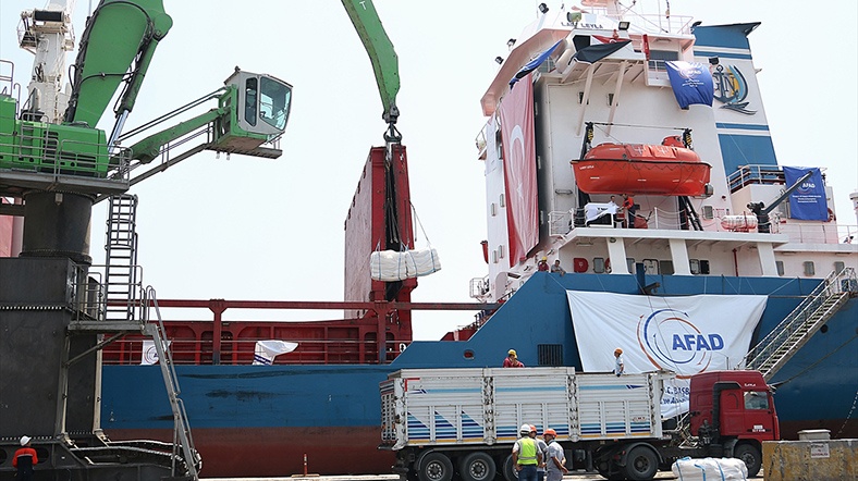 Gemi Gazze'ye 10 bin oyuncak, 10 bin gıda kolisi, 5 bin ton un, 2 bin ton pirinç, 3 bin ton şeker götürecek.