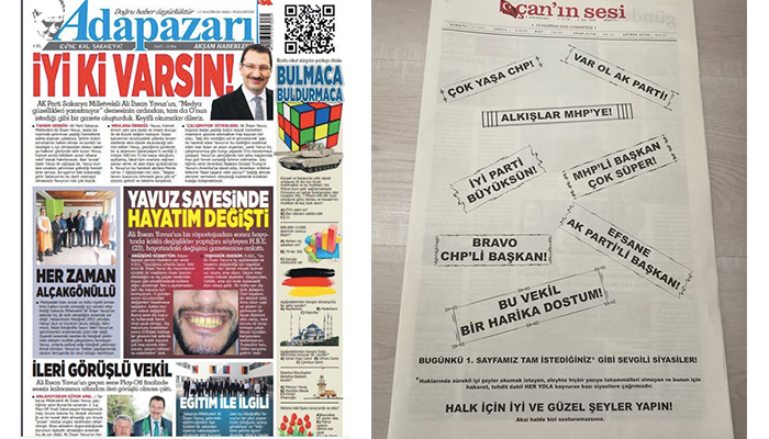 Çanakkale’de 56 yıldır yayınlanan Çan’ın Sesi gazetesi ve Sakarya’nın 67 yıllık ilk günlük gazetesi Adapazarı Akşam Haberleri, siyasetçilerin baskılarına ve eleştiriye tahammülsüzlüklerine yaratıcı birinci sayfalarla tepki gösterirken, ulusal medyaya da cesaret ve basın özgürlüğü dersi verdi.