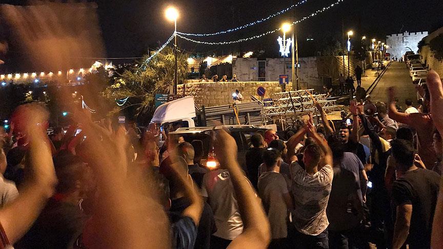İsrail Güvenlik Kabinesinin önceki gece verdiği karar üzerine Mescid-i Aksa'nın kapılarındaki dedektörleri söken polis, kapılarda kalan demir korkulukları da kaldırdı. Korkulukların kalkmasının ardından Mescid-i Aksa'nın Aslanlı (Esbat) kapısında toplanan Kudüs halkı kutlama yapıyor.