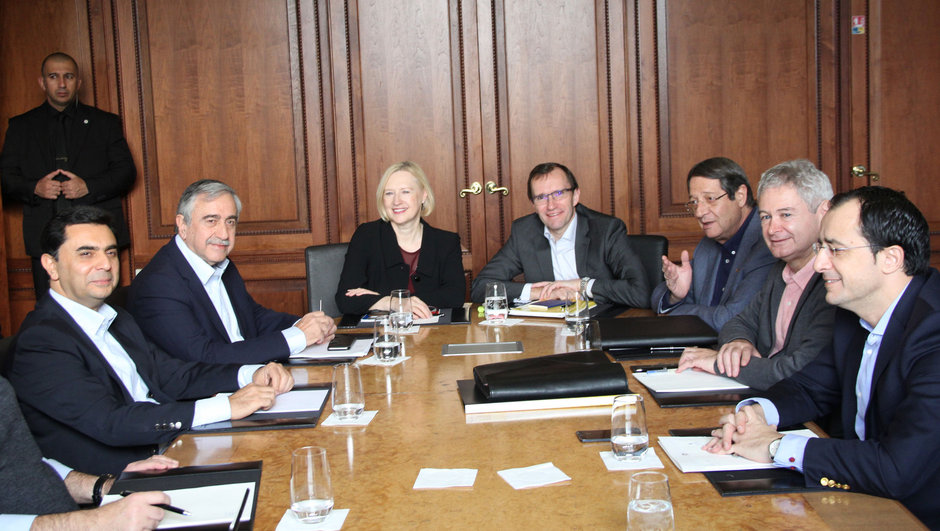 Müzakereler, Kuzey Kıbrıs Türk Cumhuriyeti (KKTC) Cumhurbaşkanı Mustafa Akıncı, Rum lider Nikos Anastasiadis ve BM Genel Sekreterinin Kıbrıs Özel Danışmanı Espen Barth Eide'nin katılımıyla yürütülüyordu.