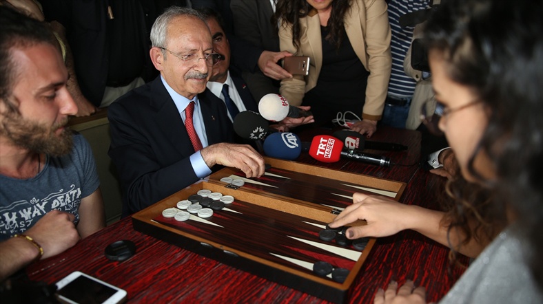 Kılıçdaroğlu, daha sonra çevredeki vatandaşlarla sohbet edip bir kafeteryaya girerek burada arkadaşıyla tavla oynayan iki öğrenciye katıldı. CHP lideri, Gaziantep Üniversite Gıda Mühendisliği öğrencisi Ayşegül Dardan'ın masasına konuk oldu. Kısa sohbetin ardından Dardan ile tavla oynayan Kılıçdaroğlu, tek el oynanan oyunu kazandı.