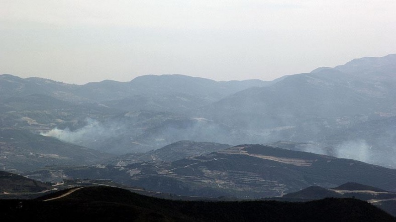 Suriye'de Esed rejimine ait birlikler, Türkmendağı'nın Cebel Ekrad ve İdlib kenti ile bağlantısını sağlayan Obin yoluna top atışı düzenliyor.