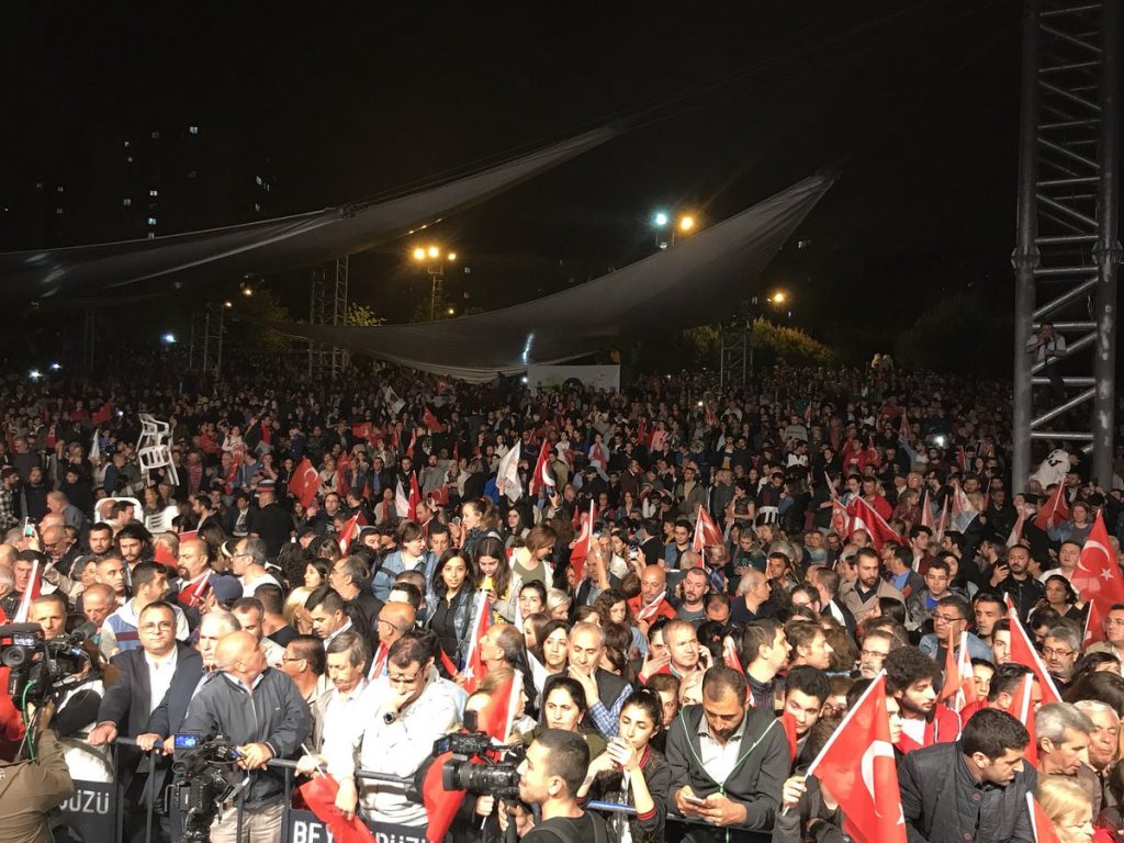 Biz güler yüzle, umutla sevgiyle, saygıyla hakkımızı söke söke alacağız. Bu şehirn 16 milyon insanının emeğine, alın terine, vicdanına, ahlakına güveniyorum. Ben burada AK Parti'li, MHP'li  arkadaşlara, geçmişten beri oy vermiş hatta o partilerde görev alan arkadaşlara sesleniyorum. Bazıları prensiplerini, partileri için değiştirir; bazıları partilerini prensipleri için değiştirir. Bize yapılan adaletsizliği, aymazlığı düşünmeye davet ediyorum. Son olarak: