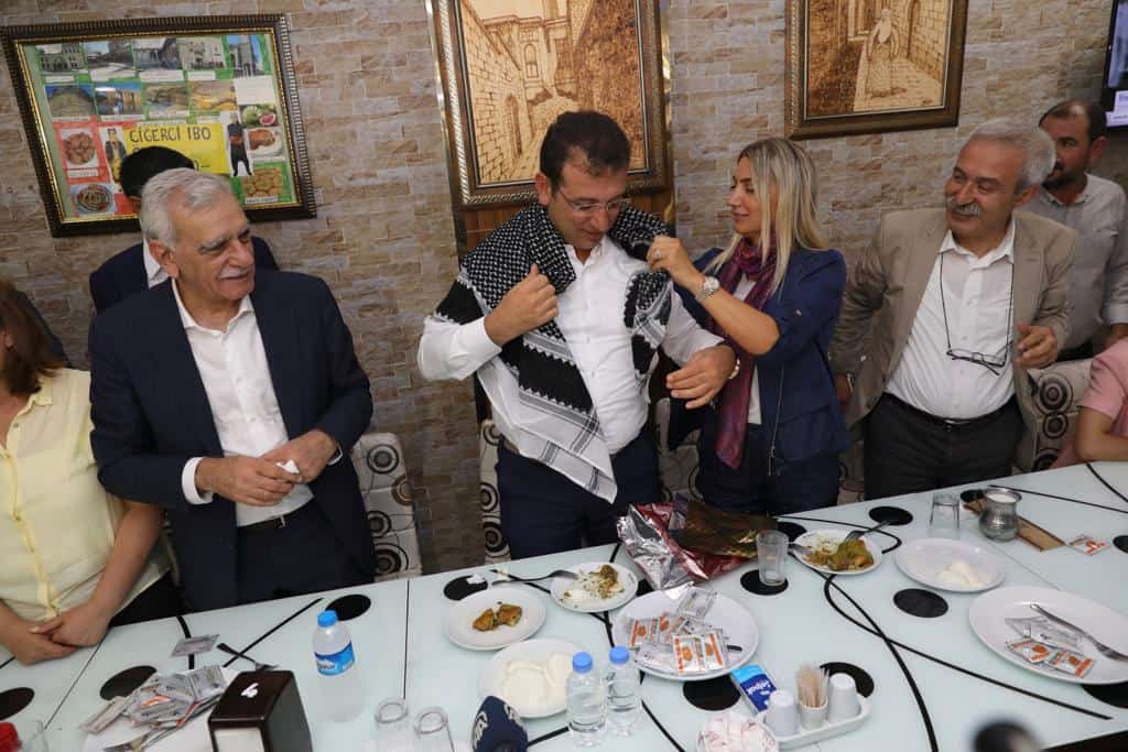 Söz verdiği Cihan Yaşar’ın nikah şahitliğini yapmak için çıktığı yolculukta ilk durağı Diyarbakır olan İmamoğlu, partisinin il başkanlığındaki açıklamasında Mardin’de görevden alınan HDP’li Ahmet Türk ve Diyarbakır’da görevden alınan Adnan Selçuk Mızraklı’nın da bulunduğu isimlerle bir araya geldi.