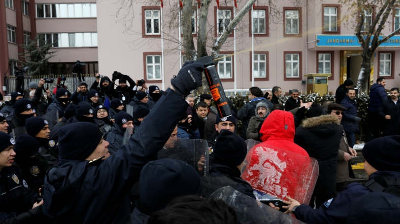 CHP'li milletvekilleri, bazı sivil toplum kuruluşu üyeleri ve avukatlardan oluşan bir grup Meclis Dikmen kapısı önünde toplandı. Görüşmelerine başlanacak olan anayasa değişikliği teklifini protesto etmek isteyen gruba çevik kuvvet ekipleri biber gazıyla müdahale etti.