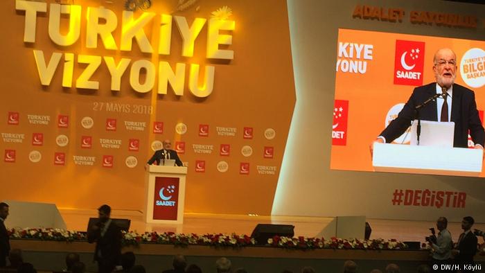 Saadet Partisi’nin cumhurbaşkanı adayı Temel Karamollaoğlu, partisinin “Türkiye Vizyonu” başlıklı seçim beyannamesini Ankara’da 8 bin kişilik toplantı salonunda açıkladı. Kadınların ve erkeklerin ayrı ayrı oturtulduğu toplantıya özellikle kadınların ve gençlerin ilgisi çok yüksekti. Saadet Partisi bayraklarını sallarken “Yalancılardan kurtulacağız. Bu düzeni değiştireceğiz” diyen kadınlar, Temel Karamollaoğlu’nun 24 Haziran için kullandığı “değiştir” sloganına da en çok desteği veren grup olarak biliniyor. “Bilge başkan Temel başkan”, “Mücahit Erbakan”, “Değiştir, bu düzeni değiştir” sloganları arasında kürsüye çıkan Karamollaoğlu, kürsüden yaptığı konuşmayı bir süre önce sosyal medyanın en popüler adresi Twitter’dan başlattığı "dijital miting" uygulamasına da çevirdi. Salonu tıklım tıklım dolduranlar bir yandan Karamollaoğlu’nu dinlerken bir yandan da “Temel Başkan Vizyonu” ve “Saadet Türkiye Vizyonu” etiketleriyle akıllı telefonlarıyla yayın yaptı.
