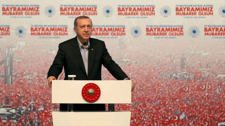 "Darbe girişiminde yer alanlar elbette FETÖ terör örgütünün mensuplarıdır. Fakat biliyoruz ki oyun büyük. 15 Temmuz bu oyunun nihayeti değil, sadece bir aşamasıdır. Sadece Türkiye'yi karıştırmıyorlar. Irak'ı karıştırdılar mı, karıştırdılar. Suriye'yi karıştırdılar mı, karıştırdılar. Afganistan, Mısır… Aynı şekilde Tunus, aynı şekilde Libya, hepsini karıştırıyorlar. Bu hala devam ediyor. Oynanan oyun İslam dünyasında. Oynanan oyun Müslüman ülkelerde. Milletimiz bizden bu oyunu kökünden bozmamızı istiyor ve bekliyor."