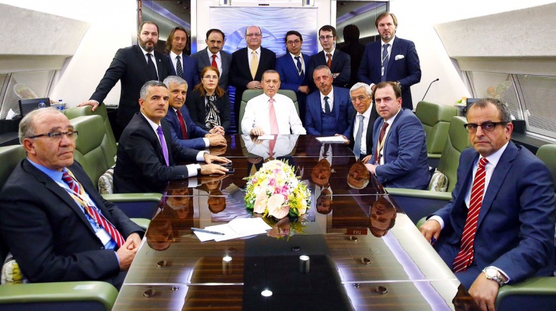 Erdoğan, St. Petersburg dönüşü uçakta gazetecilerin sorularını yanıtladı. Suriye konusunda Rusya ile yapılan görüşmelere ilişkin bilgi veren Erdoğan, iki tarafın da aralarında asker, diplomat ve istihbarat yetkililerinin bulunduğu karşılıklı üçlü heyet oluşturma kararı alındığını ve heyetlerin Perşembe günü (bugün) ilk görüşmeyi yapacağını söyledi. Erdoğan şu ifadeleri kullandı: