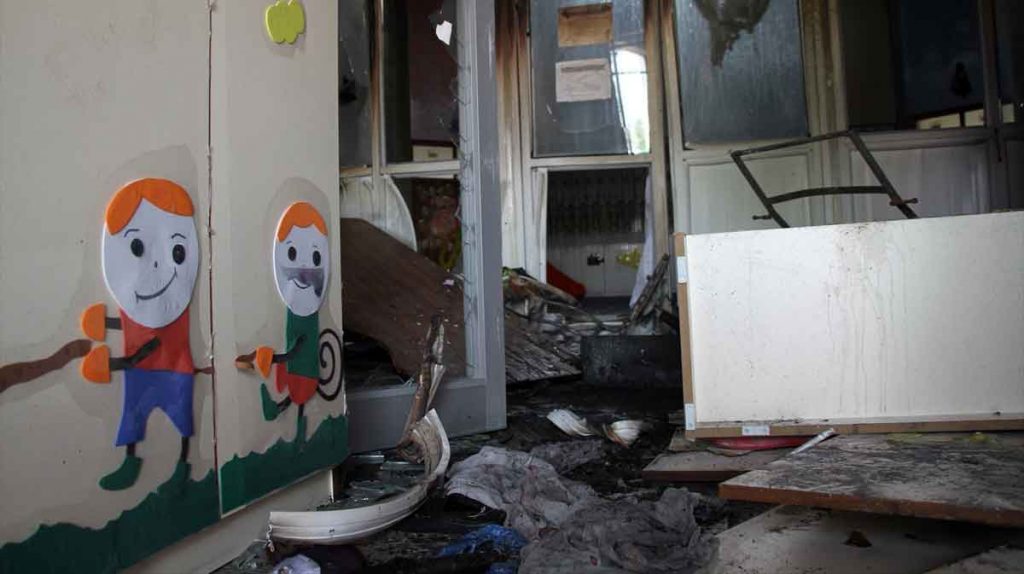 Patlamanın ardından çıkan yangında sınıflar, oyun bölümü ve idare odasında yangın çıktı. Durumun haber verilmesi üzerine olay yerine gelen itfaiye ekiplerince söndürülen yangında, okulun büyük bölümü kullanılamaz hale geldi.