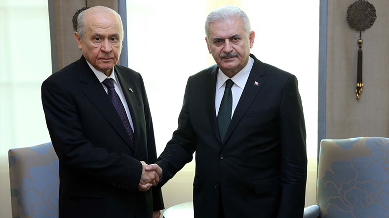 Başbakan Binali Yıldırım ile MHP Genel Başkanı Devlet Bahçeli'nin Çankaya Köşkü'ndeki görüşmesi 15:20'de başladı ve yaklaşık 45 dk sürdü. Görüşme basına kapalı yapıldı.