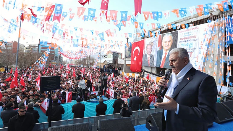 Ardahan'da miting yapan Başbakan Binali Yıldırım, önce Almanya sonra Hollanda ile yaşanan siyasi krize değindi. Başbakan Yıldırım, "Bu millet oynanmak istenen kirli oyunu görüyor ve biliyor. Bunun cevabı 16 Nisan'da. Türkiye, 'evet'le Avrupa'yı inletecek" dedi.
