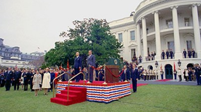 "Throwback Thursday" yani #tbt etiketinin de kullanıldığı mesajda, "Beyaz Saray’daki resmi devlet yemeğinde Başbakan Nihat Erim, Başkan Richard Nixon eşleri ile birlikte (1972)" ifadeleri kullanıldı.