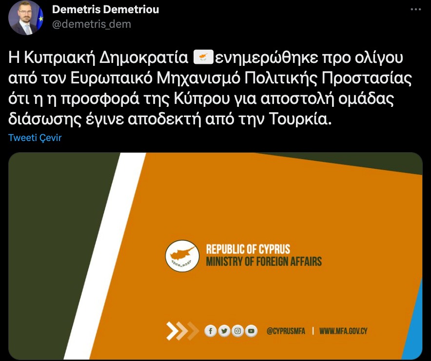 HaberlerGündemManşet Türkiye, Güney Kıbrıs’ın yardım talebini önce reddetti sonra kabul etti Serbestiyet - 8 Şubat 2023 - 11:59 Güney Kıbrıs Dışişleri Sözcüsü Demetris Demetriou: “Türkiye, yardım talebimizi kabul etti”. Bakanlık daha öncesinde Türkiye’nin yardım talebini reddettiğini açıklamıştı.