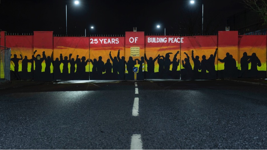 25. yıl kapsamında cemaatlerin mahalleleri arasına geçmişte çatışmaları önlemek amacıyla örülen duvarlara barışı anlatan grafikler çizildi.