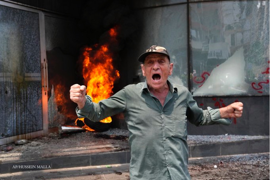 Banka önüne gelen yaşlı bir kadın, “Ben devletime güvenip bankaya yatırdığım ama 2 yıldır çekemediğim Dolarlarımı geri istiyorum! #Lübnan’ı yönetenlere yazıklar olsun!” dedi.