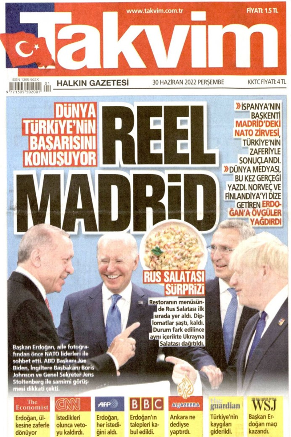 Sıra dışı olmaya gayret eden başlıklarıyla bilinen Takvim ise “Reel Madrid” manşetiyle çıktı.