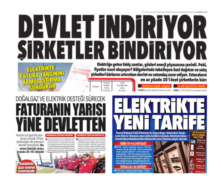 Türkiye gazetesi: “Faturaların yarısı yine devletten”