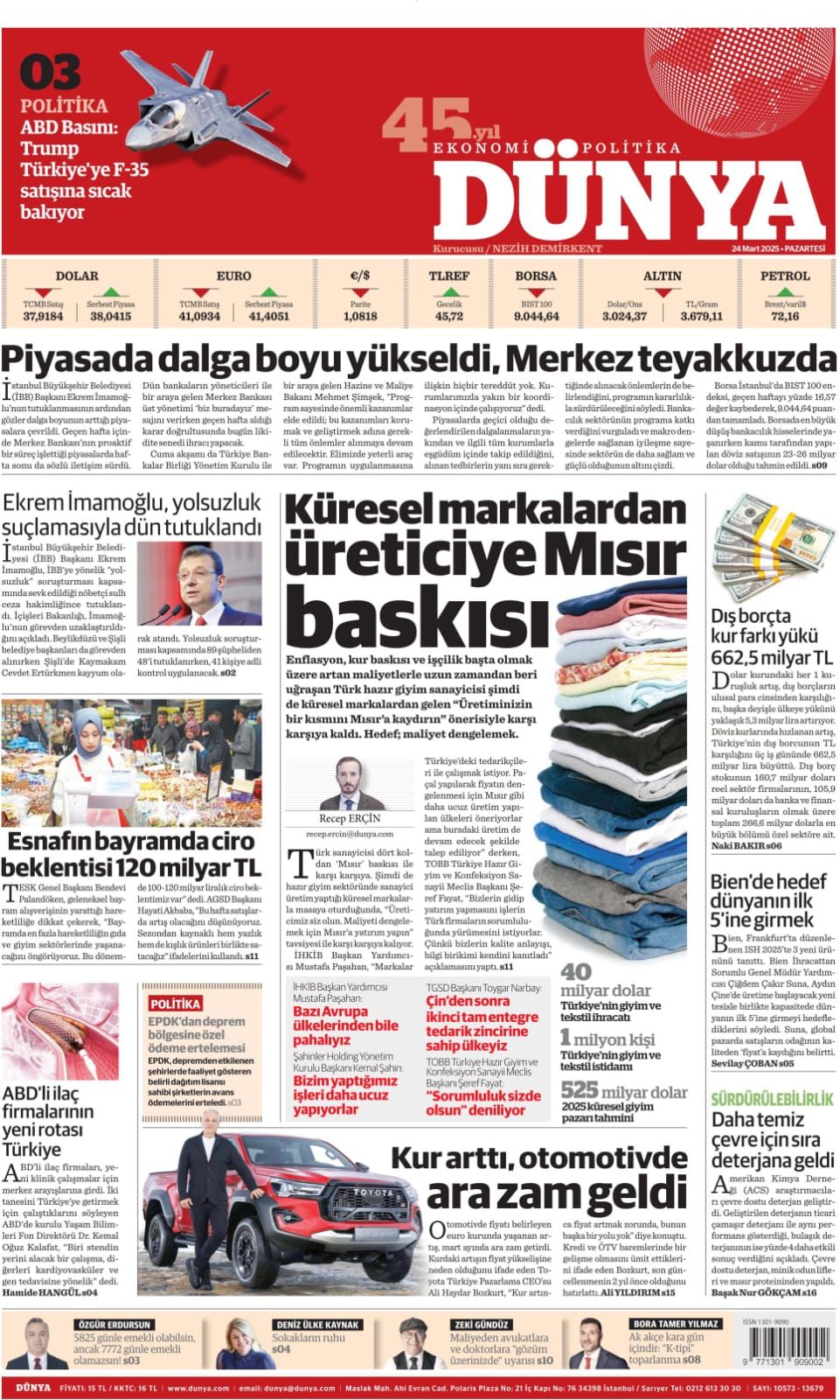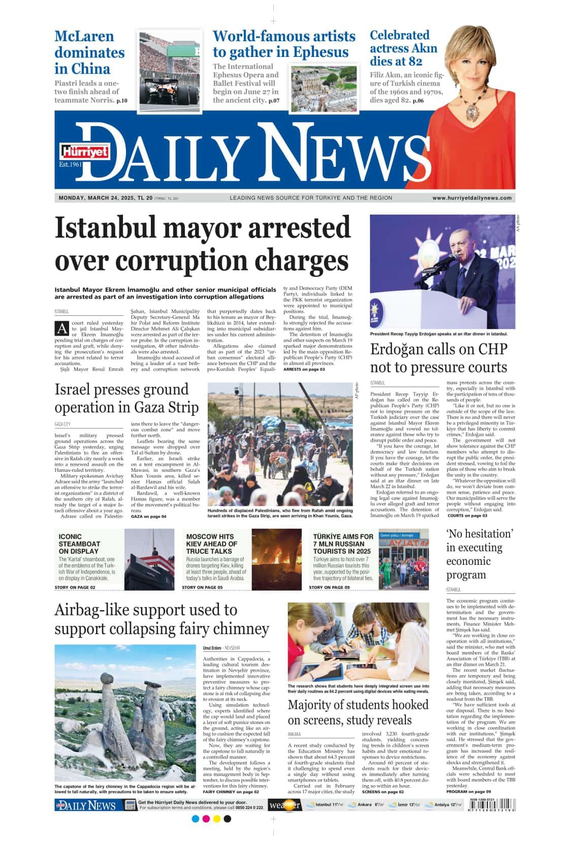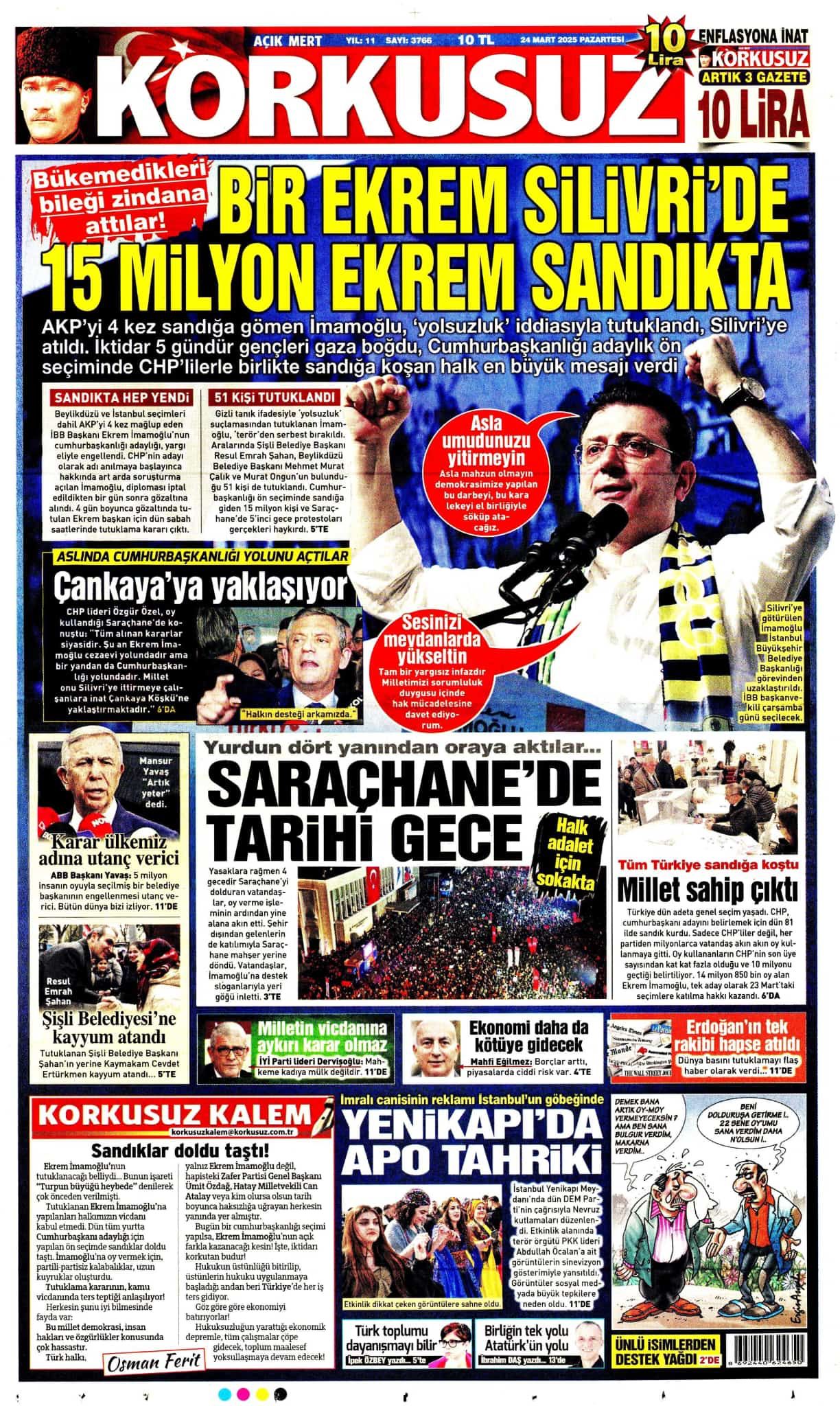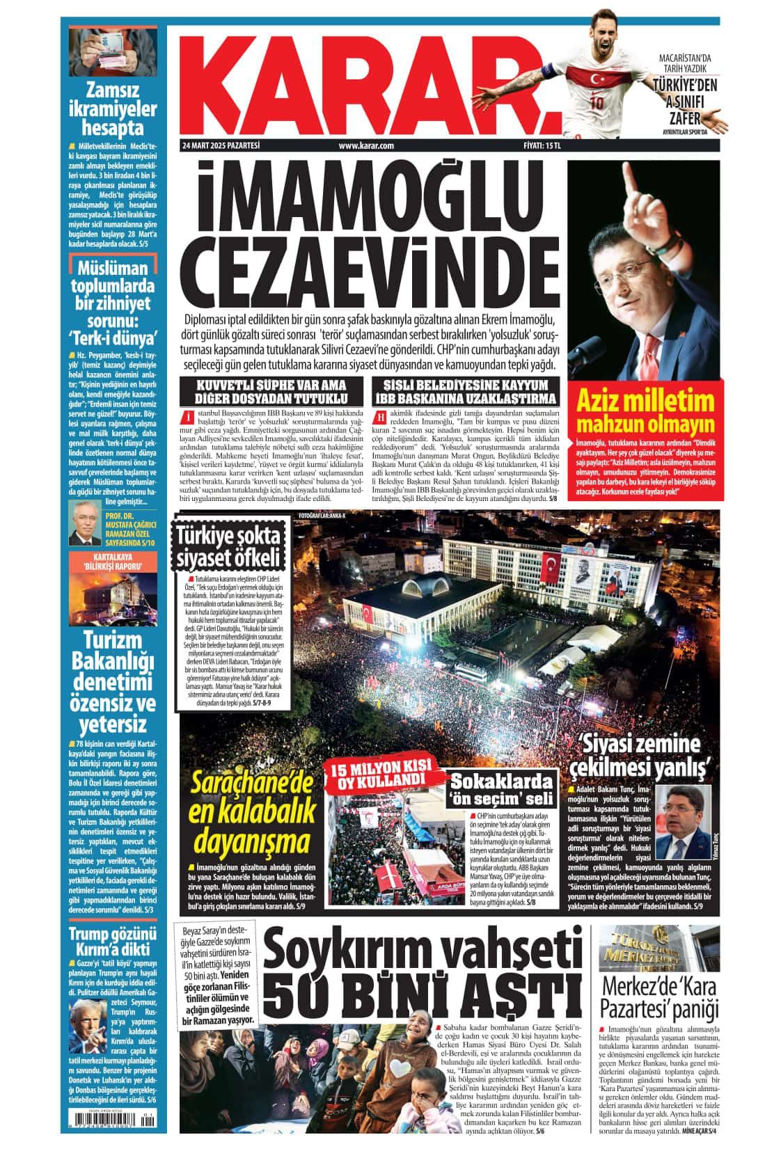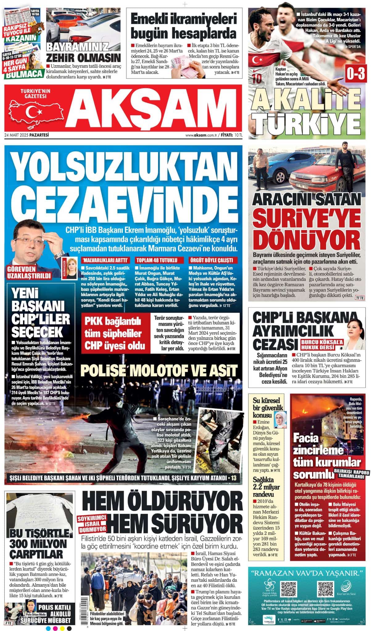İBB Başkanı Ekrem İmamoğlu’nun tutuklanması gazetelerin manşetlerinde. İktidara yakın gazeteler ortak bir İmamoğlu manşetiyle çıktı: “Yolsuzluktan tutuklandı.”