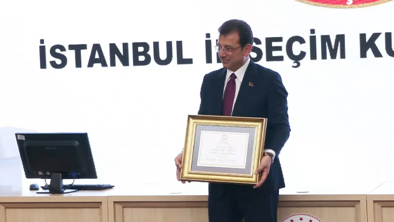 İBB Başkanı Ekrem İmamoğlu mazbatasını aldıktan sonra konuştu: “Van'da yaşanan tam bir garabet. Bütün bu hususları hassaslık ve titizlikle takip ediyorum.", "Bu konuda haktan ve hukuktan yana olmaktan bu kardeşiniz asla vazgeçmeyecek. Haksızlığı görüp susan dilsiz şeytan olur!"