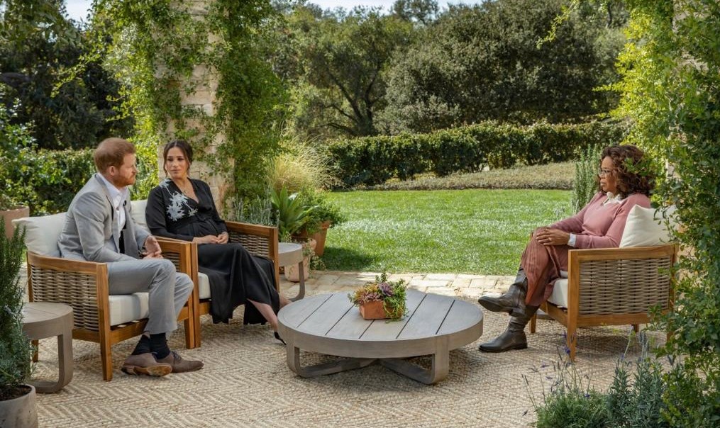 Britanya’nın tabloid gazeteleri Meghan hakkında itibar suikasti kampanyasına başladıklarında, Meghan “Şirket” olarak tanımladığı Kraliyet kurumundan destek almadı. Psikiyatrik destek alması talebine de olumlu yanıt verilmedi. Ailede herkesin tabloid gazetelerle başının derde girdiği, bunu atlatılması gereken bir dönem olarak görmesi istendi. Meghan’ı anladıkları, ancak ödenek ayrılan bir aile üyesi olmadığı için ellerinden gelen bir şey olmadığı söylendi. Meghan bu dönemde Lady Diana’nın başına gelene benzeyen bir yalnızlığı ve psikolojik kırılganlığı yaşadı ve artık, “hayatta olmak istemedi.” Harry, eşinin kendisine zarar vermesinden korktuğu için bu dönemde Meghan’ı yalnız bırakmadı, ona sık sık sarılarak destek verdi. Röportajın bu bölümünde Meghan’ın gözleri yaşlarla dolunca Oprah da duygulandı ve gözünden yaşlar süzüldü.