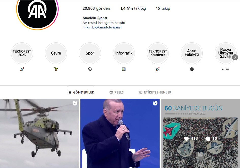 1 milyon 400 binin üzerinde takipçisi olan Anadolu Ajansı’nın Instagram hesabında Cumhurbaşkanı Recep Tayyip Erdoğan’ın Ankara mitinginin haber paylaşımı yapıldı.