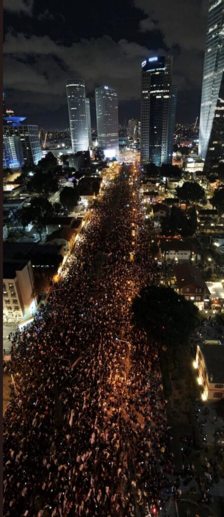 Dün 100 bin İsrailli 20 farklı şehirde sokağa çıktı ve Binyamin Netanyahu hükümetinin yargı reform taslağını protesto etti. İsrailliler beş haftadır her Cumartesi gecesi sokağa çıkıp Netanyahu ve radikal sağcı hükümetinin reform projelerine tepki gösteriyor.