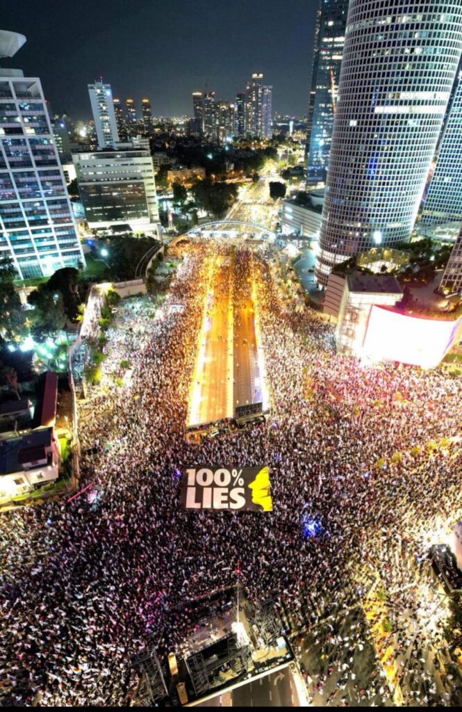 Anasayfa / Dünya / İsrailli protestoculardan Netanyahu pankartı: “%100 yalan”