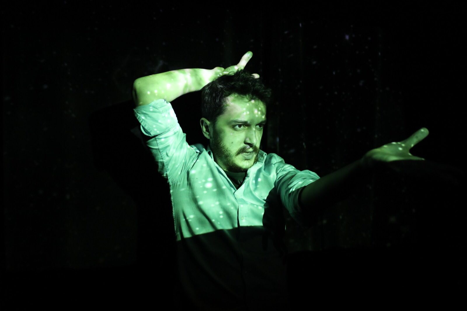 Hayır, her oyunun enerjisi farklı oluyor aslında. Seyirci iş çıkışı mı geldi, bir arkadaşı zorla mı getirdi, yorgun mu, aç mı… Üniversite öğrencisi ödev yapmak için mi geldi… Mekânın genişliği… salon… Bunların hepsi oyunu etkiliyor ve her seferinde başka bir lezzet çıkıyor ortaya. Seyirciyle karşılıklı flörtleşiyoruz aslında, bu da tek kişilik oyunların olmazsa olmazıdır. Yanında bir partnerin olmadığı için tüm enerjiyi seyirciden alırsın. Oyunun iyi olmasında seyircinin rolü çok büyük.