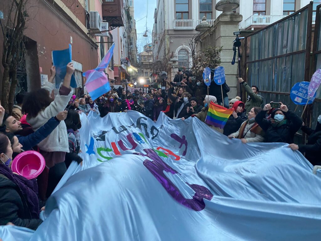 Kadınlar ise çok sayıda ara sokakta buluşmaya devam etti. Firüzağa’da toplanan kadınların önü polis tarafından kesildi.