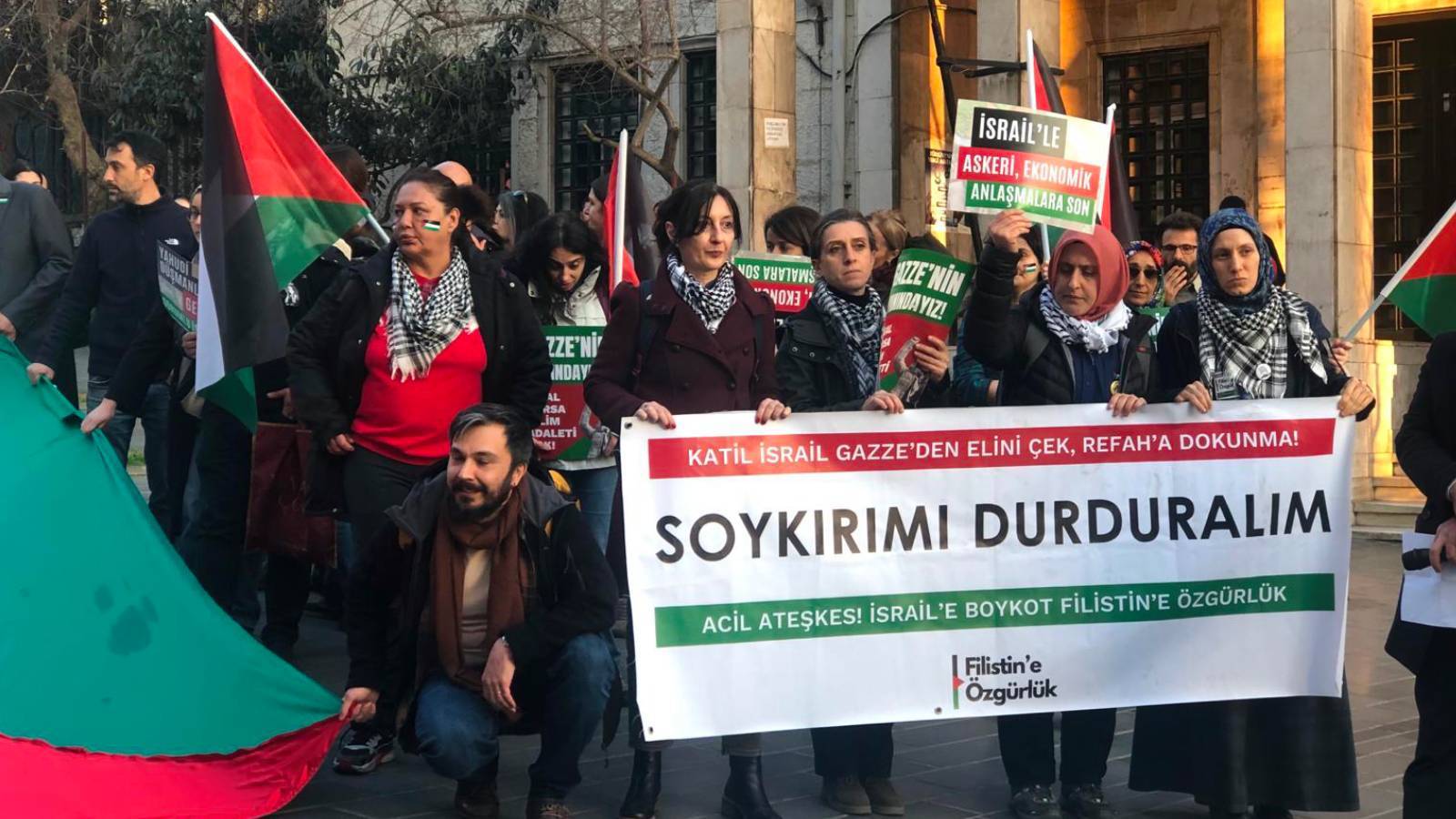 Amacımız Gazze’de bizden kopartılıp alınan her bir Gazzelinin, işçinin, yoksulun, kadının LGBT+’nın, yaşlının, çocuğun ve tüm canlıların unutulmayacağını göstermek. Amacımız bugün Vicdan Mahkemesi’ne Refah’tan bağlanan Filistinli arkadaşımıza yalnız olmadığını, Gazze’yle dayanışan kocaman bir vicdan hareketi olduğunu göstermek. Amacımız alarm zillerini çalmak. Amacımız tüm dünyayla birlilkte tüm dünyanın gözünü bu soykırım girişimine odaklamak. Amacımız uyarmak. İsrail Devleti bunu tek başına yapmıyor. Arkasında Batı bloku devletleri var, ABD var. Artık soykırım suçunun destekçisidir bu devletler.