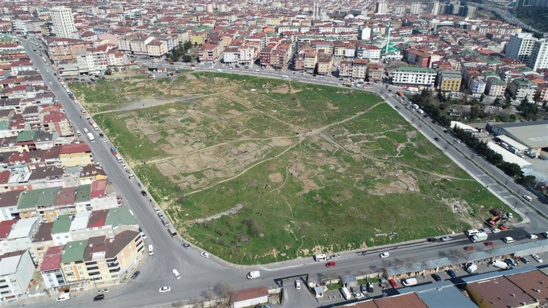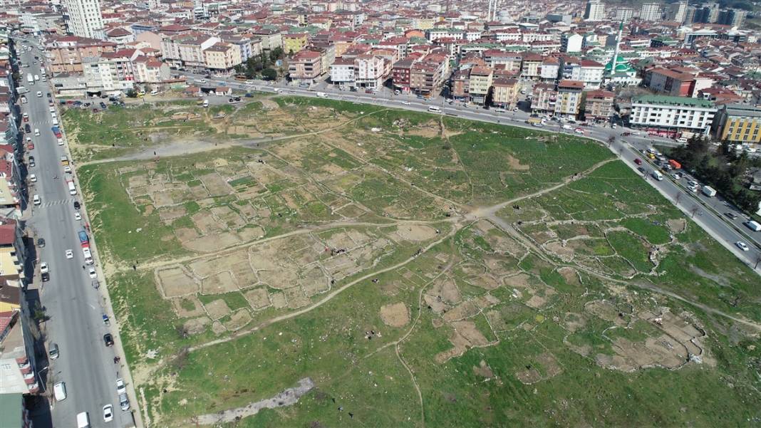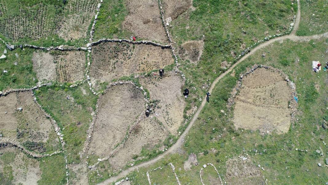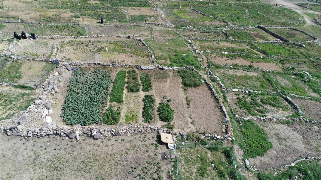 Sınırları taşlarla çevrili 50’ye yakın ekili alan havadan da görüntülendi.