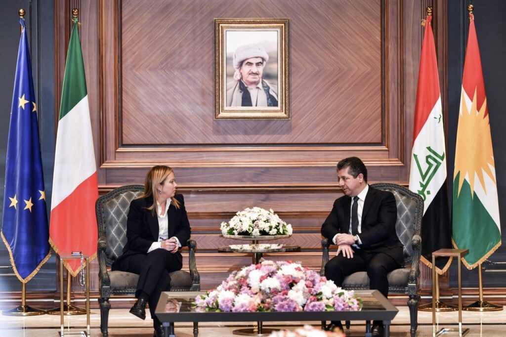 İtalya’nın ilk kadın başbakanı Giorgia Meloni, dün (23 Aralık) Irak ziyareti kapsamında Irak Cumhurbaşkanı Latif Reşid ve Irak Başbakanı Muhammed Şiya es-Sudani ile görüştükten sonra geçtiği Erbil’de Kürdistan Bölgesel Yönetimi Başbakanı Mesrur Barzani tarafından karşılandı. Meloni-Barzani görüşmesinde Iraklı yetkililerin İtalya bayrağı yerine yanlışlıkla İrlanda bayrağı kullandığı iddia edildi. İtalya Büyükelçiliği fotoğrafların açısı nedeniyle renklerin farklı gözüktüğünü belirtti ve iddiaları reddetti.