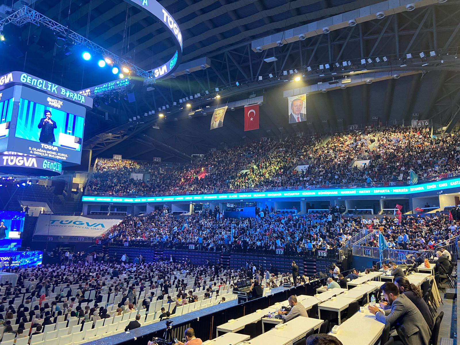 Salonda 28 Şubat, Eren Bülbül, Yasin Börü pankartları asılıydı. İslami bir ezgi olan ‘’Bir sabah gelecek kardan aydınlık’’ parçası, Erdoğan’ın salona girdiği ve çıktığı anlarda coşkuyla söylendi.