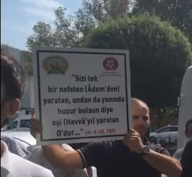 Eylem, “Bizim hedefimiz LGBTİ kişilere nefret söylemi oluşturmak değil. Biz sadece bize bunun dayatılmasına karşıyız” konuşmasıyla başladı.