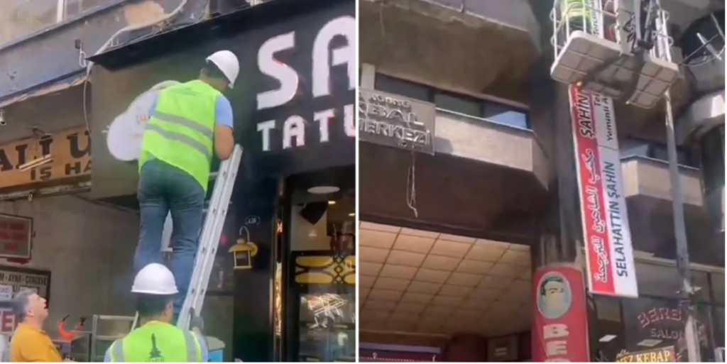 Kaldırılan tabelalardan birinin, Selami Şahin isimli bir vatandaşın tercümanlık bürosuna ait bir tabela olması da dikkat çekti.