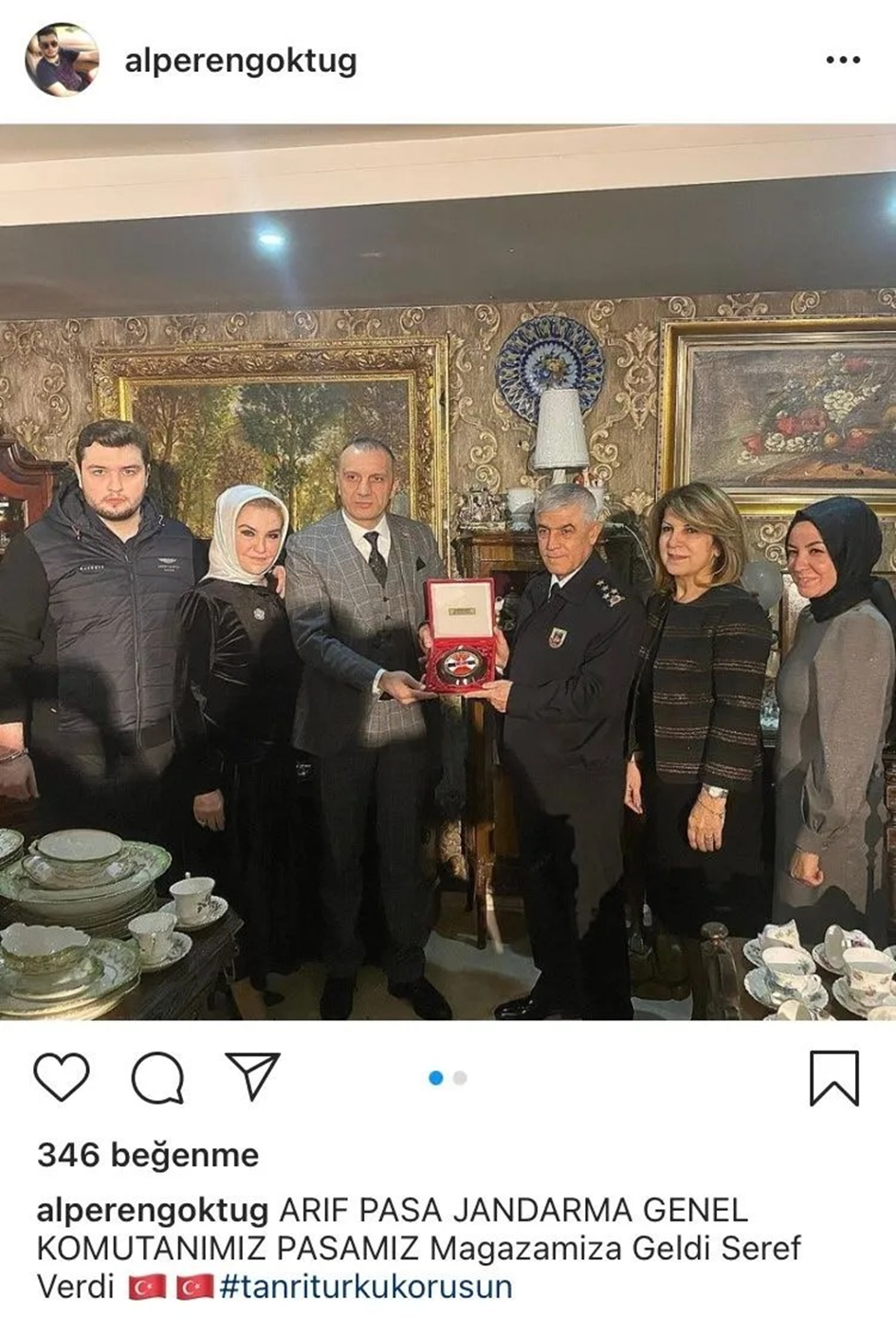 Diğer fotoğrafı ise “Jandarma Genel Komutanımız paşamız mağazamıza geldi şeref verdi” notuyla paylaştığı görülüyor.